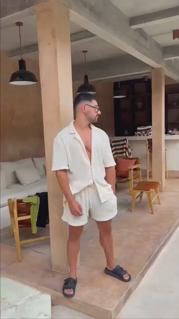 Experimente um estilo elevado com o nosso Conjunto Summer Ibiza, cuidadosamente elaborado para proporcionar tanto estilo quanto conforto. Com uma gola de botão e caimento relaxado, oferece o máximo de conforto e elegância, tornando-se o par ideal para os dias ensolarados. Confeccionado com tecidos texturizados premium, é a escolha perfeita para quem busca sofisticação e leveza.